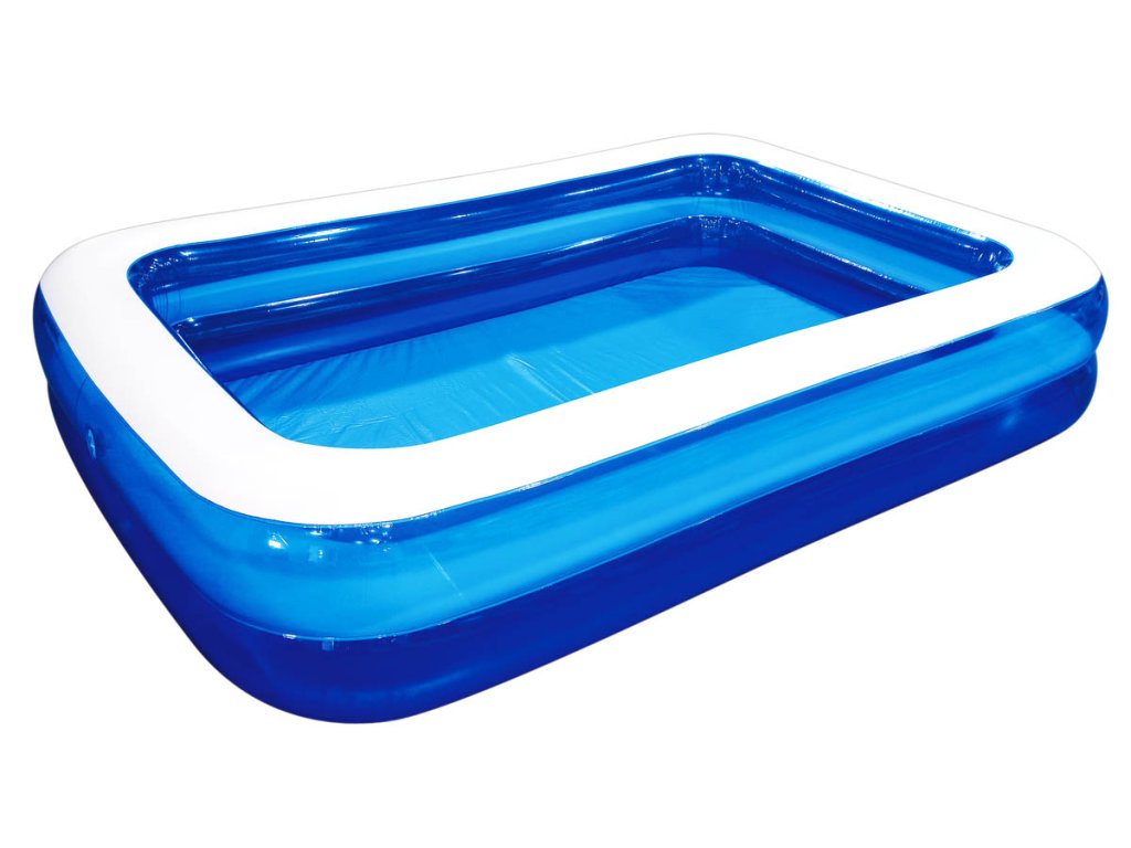 Obdélníkový dvoukomorový dětský nafukovací bazén najde své místo na každé zahradě. Pevné stěny jsou vyrobeny z průhledného a pevného vinylu. K dispozici máte ventil pro snadné vypouštění vody. Dva trojfázové propojovací ventily.