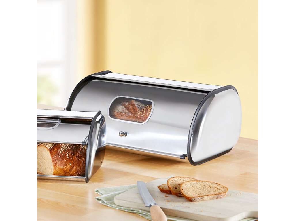 Vysoce kvalitní a elegantní nerezový chlebník vám díky průhlednému okénku ve víku vždy umožní přehled o obsahu. Díky tomu budete vždy vědět, zda máte dostatečné zásoby pečiva, i když je víko zavřené.
