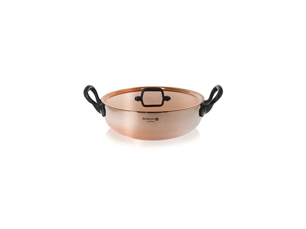 Hrnec de Buyer, 6332.28, PRIMA MATERA, měděný, poklička, litinové úchopy, zaoblené boky, pro všechny varné desky, průměr 28 cm, výška 10 cm, objem 4,9 L