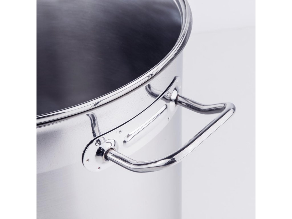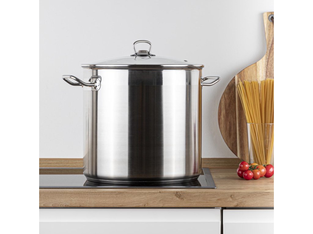 S tímto hrncem na indukci můžete najednou připravit až 20 litrů. Vaření polévky pro více lidí je pak mnohem jednodušší. Hrnec je vyroben z nerezové oceli a opatřen skleněnou poklicí. Tato poklice má větrací otvor. Rukojeti hrnce jsou matně kartáčované.