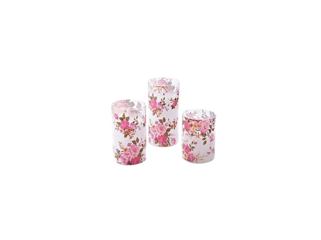 Díky dekorativnímu motivu růží upoutají sklenice se svíčkami pozornost na stole, okenním parapetu nebo příborníku.