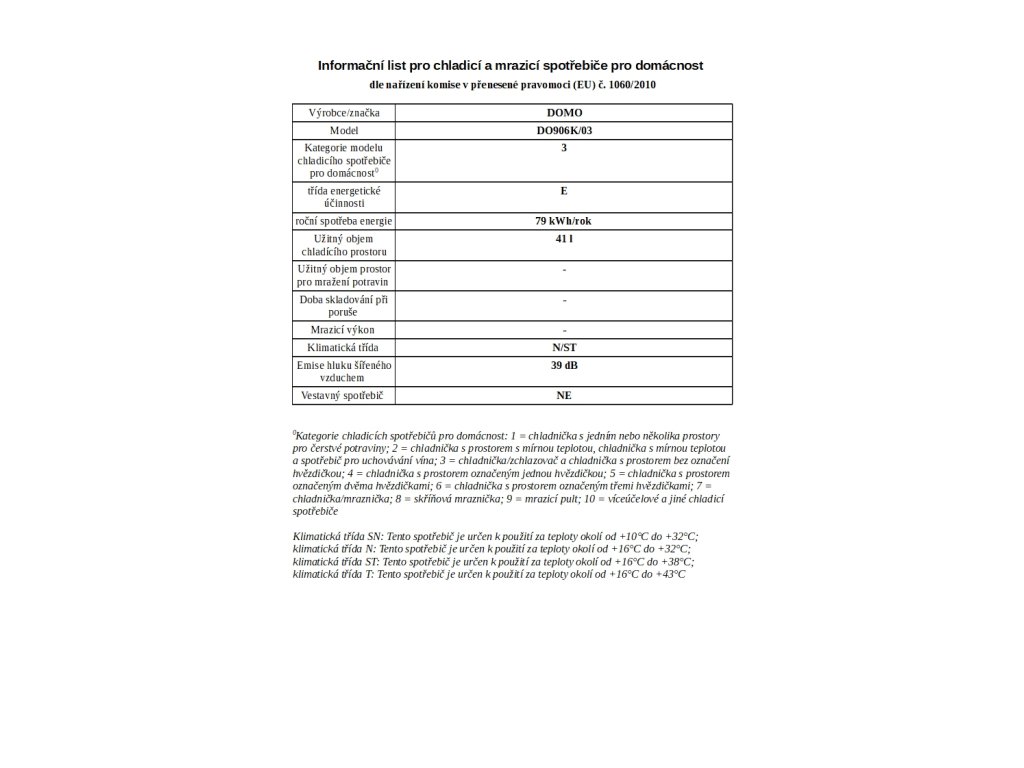 Mini lednice - DOMO DO906K/03, Objem: 41 l *, Třída: E