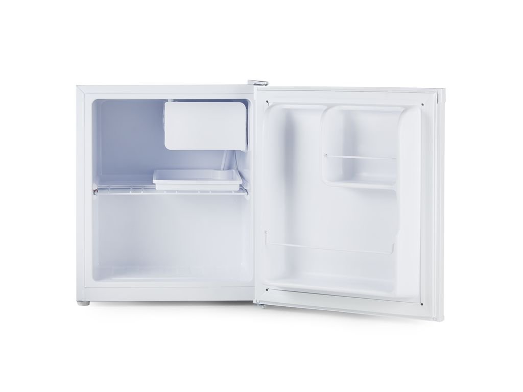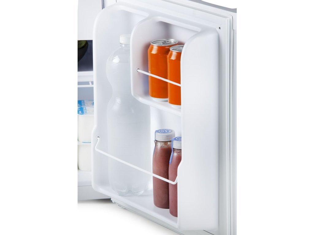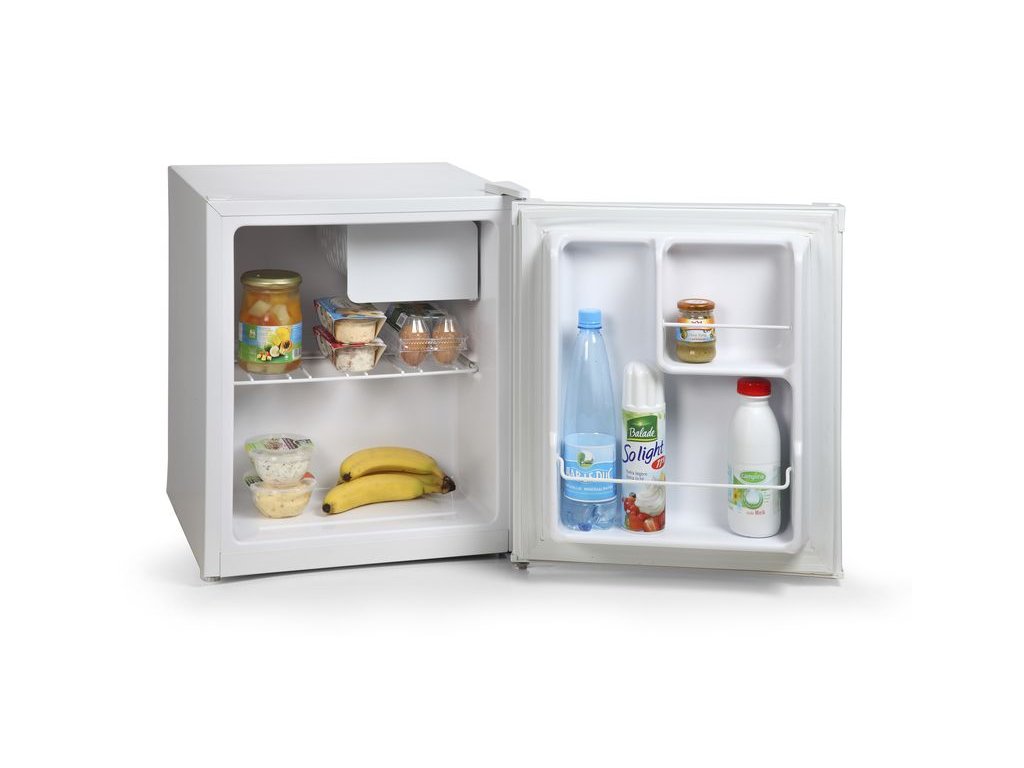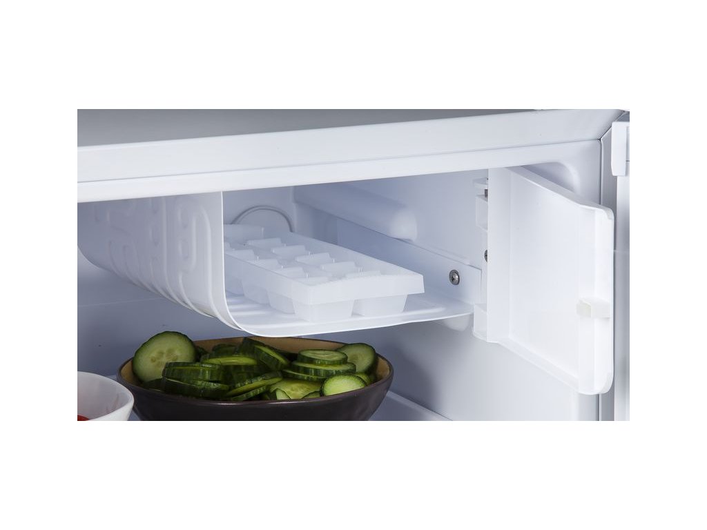 Volně stojící jednodvéřová mini lednice s mrazící přihrádkou o celkovém vnitřním objemu 41 l. Úsporná energetická třída E a rozměry vhodné pro použití v kancelářích, studentských pokojích, garsonkách i na chatě, nebo v pokoji pro hosty. Otevírání dvířek lze stranově přehodit.