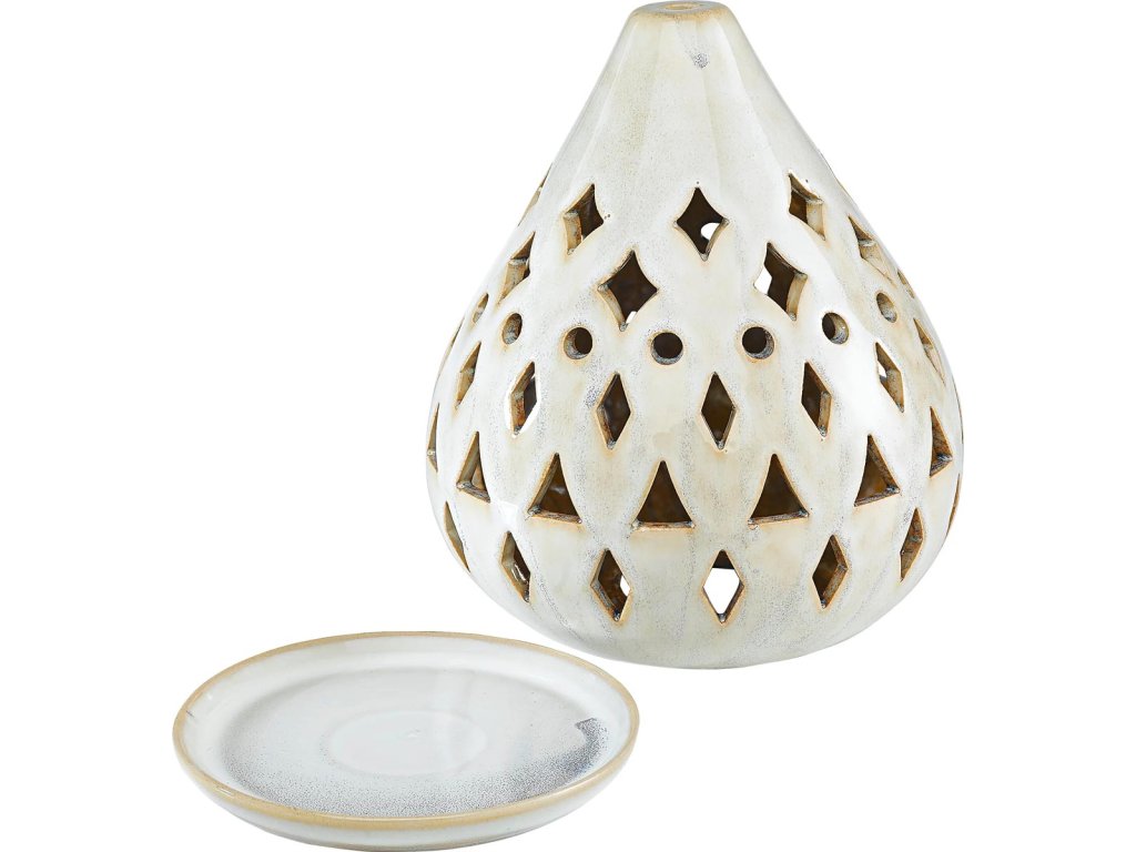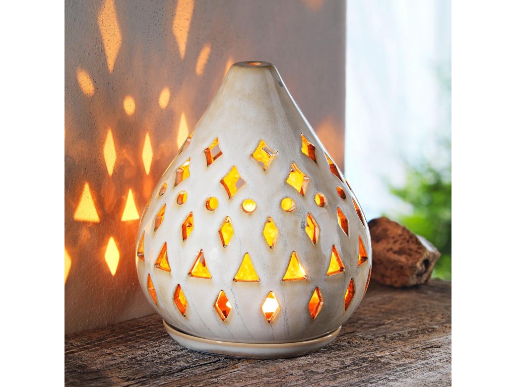 Díky harmonicky zakřivenému tvaru a efektním perforacím vytváří kouzelnou hru světla a stínů. Glazovaný povrch ve světle šedých a přírodních tónech zaujme i za dne.