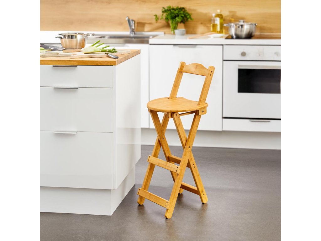 Tato rustikální bambusová barová stolička vytvoří během okamžiku další místo k sezení, nebo také poskytne úlevu při práci ve stoje kolem domu.