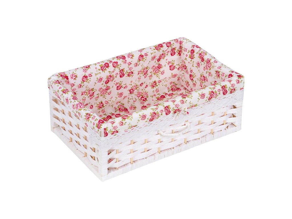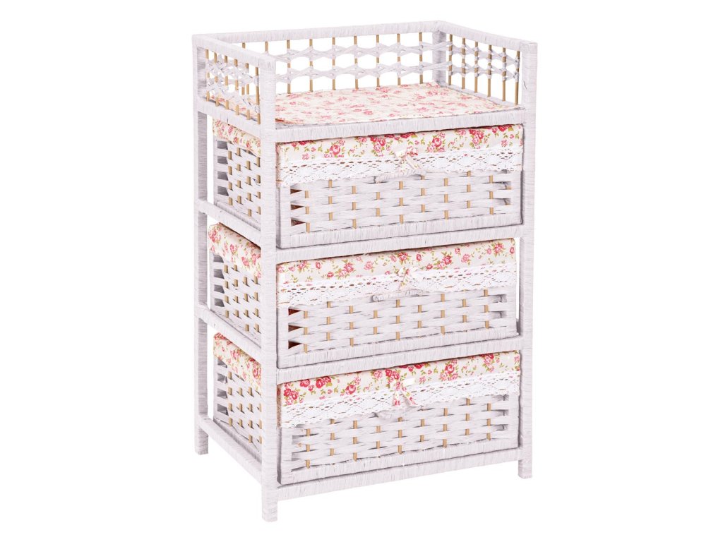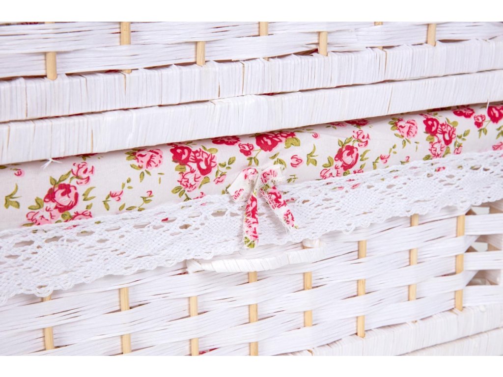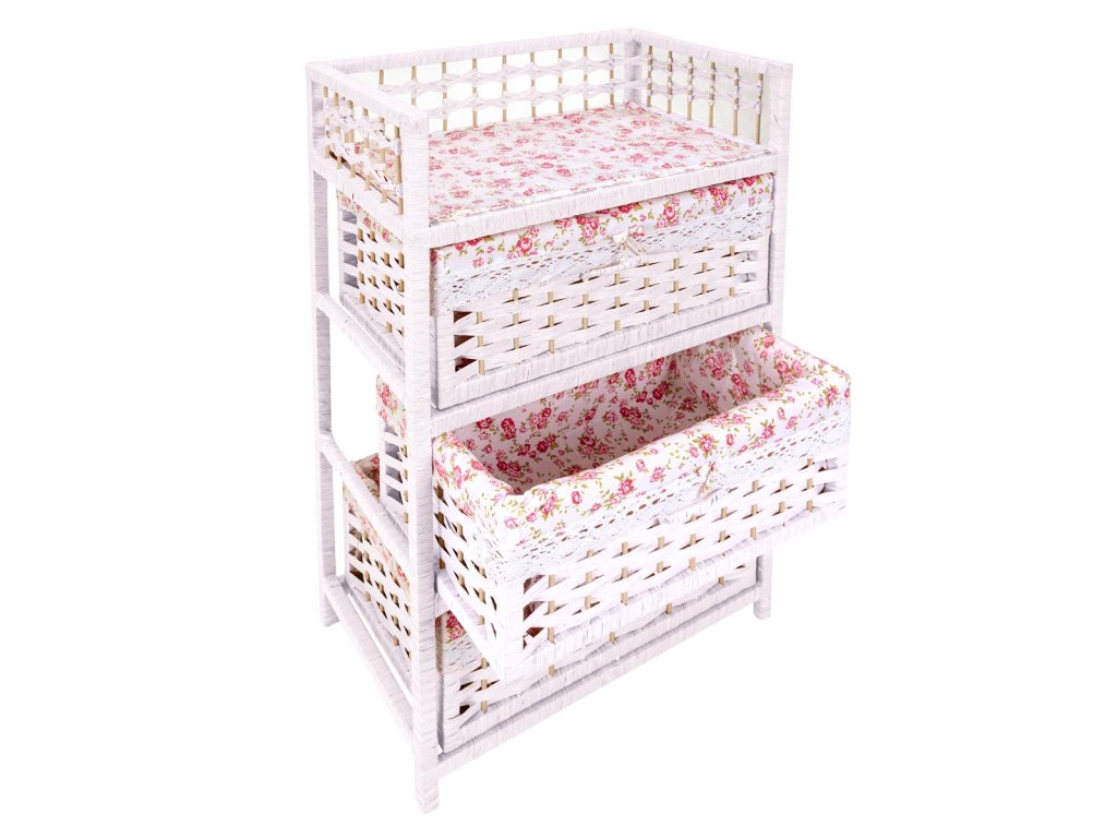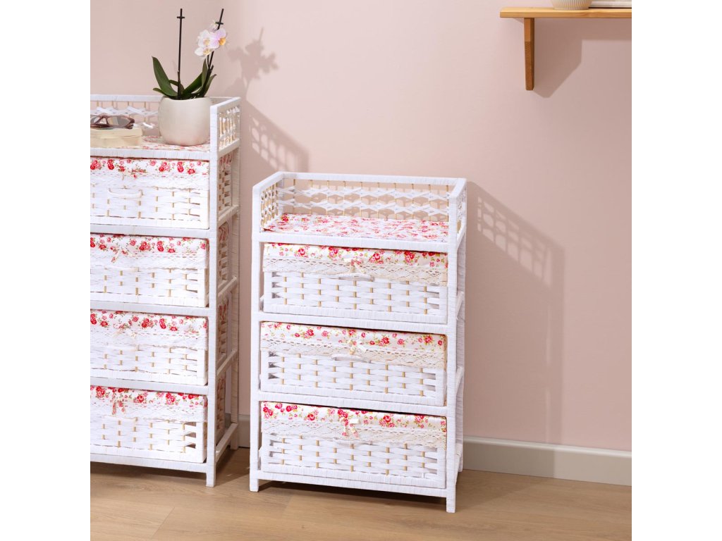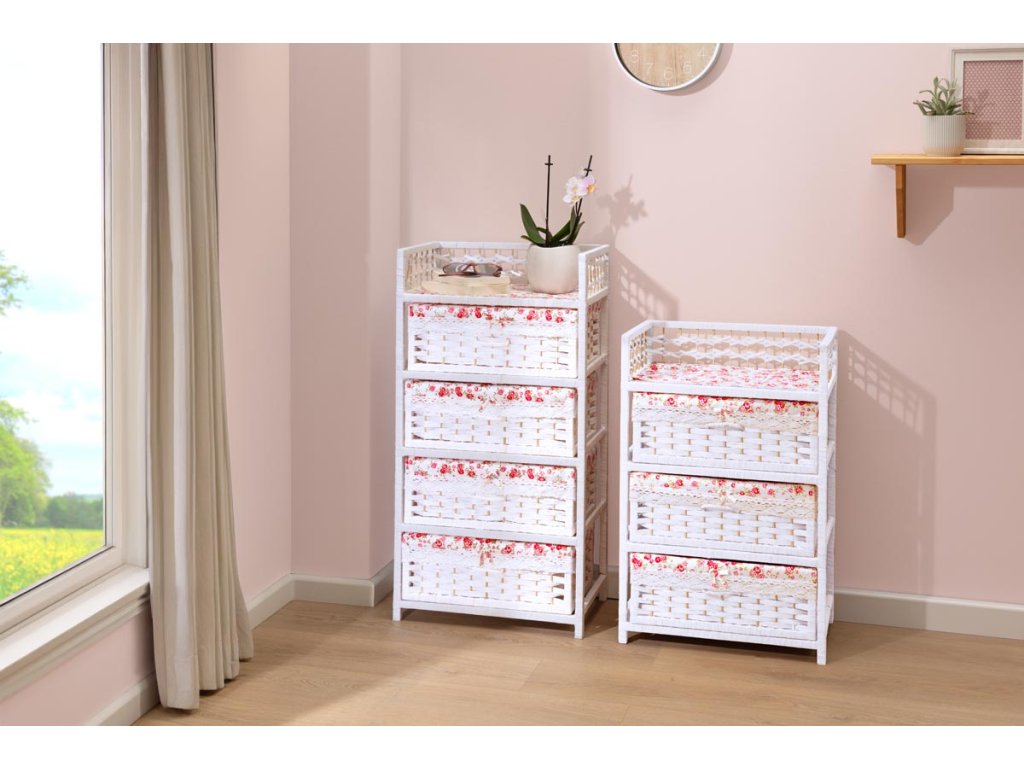 Romantický motiv růže vytváří hřejivou atmosféru. Komodu s košíky zdobí jemné volány a hezké mašle zároveň vytvářejí okouzlující doplněk.