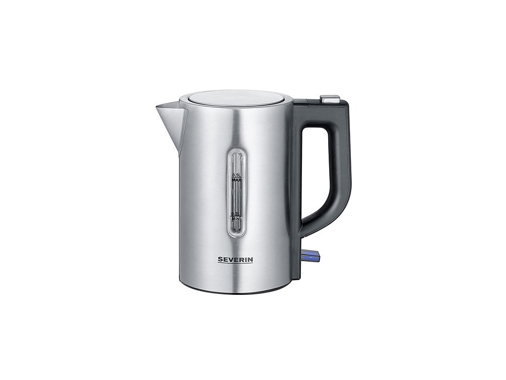 Rychlovarná konvice Severin, WK 3647, cestovní, 0,5 L, nerez ocel, otevírací tlačítko, pojistka proti přehřátí, automatické vypnutí párou, protiskluzové nožičky, duální napájení, 1100 W