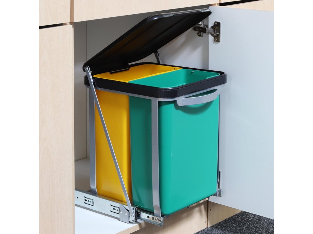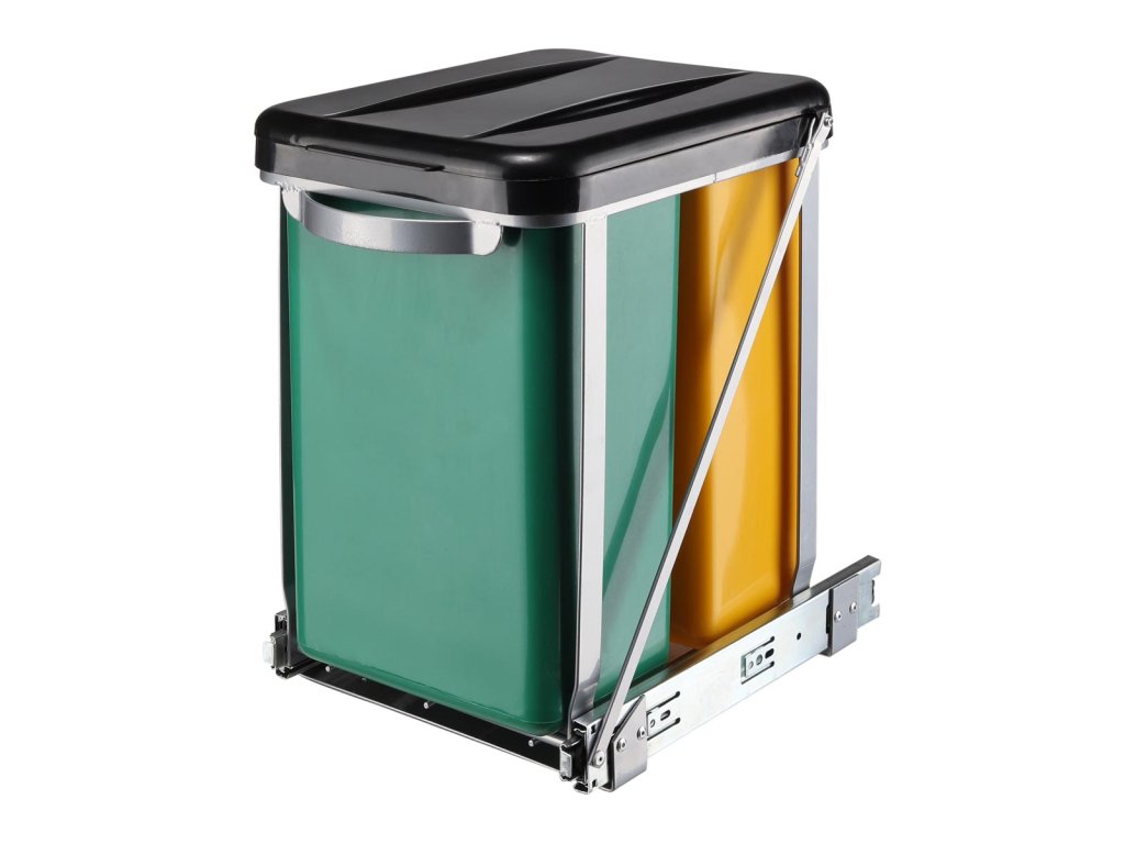 Tento teleskopický dvojitý odpadkový koš s víkem má kapacitu 2 x 8 litrů a hodí se do většiny kuchyňských skříněk (50 a 60 cm). Je ideálním řešením na sběr a recyklaci odpadu.