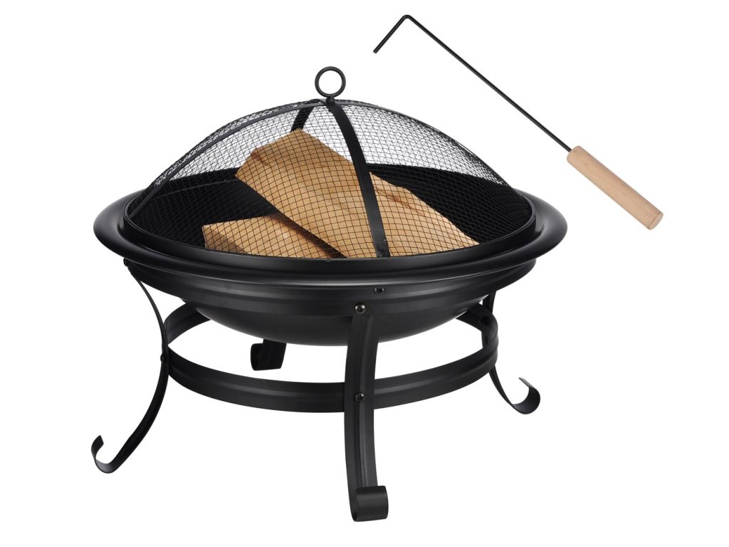 Dekorativní přenosné ohniště s ochranným krytem proti jiskrám vám nabízí pohled do živého ohně bez poškození trávníku či podlahy na terase. Ohniště na stabilních nožkách je vybaveno vnitřním žáruvzdorným košem o Ø 49 cm pro lepší hoření a ocelovým pohrabáčem s dřevěnou rukojetí na manipulaci s víkem. Materiál: žáruvzdorná ocel.