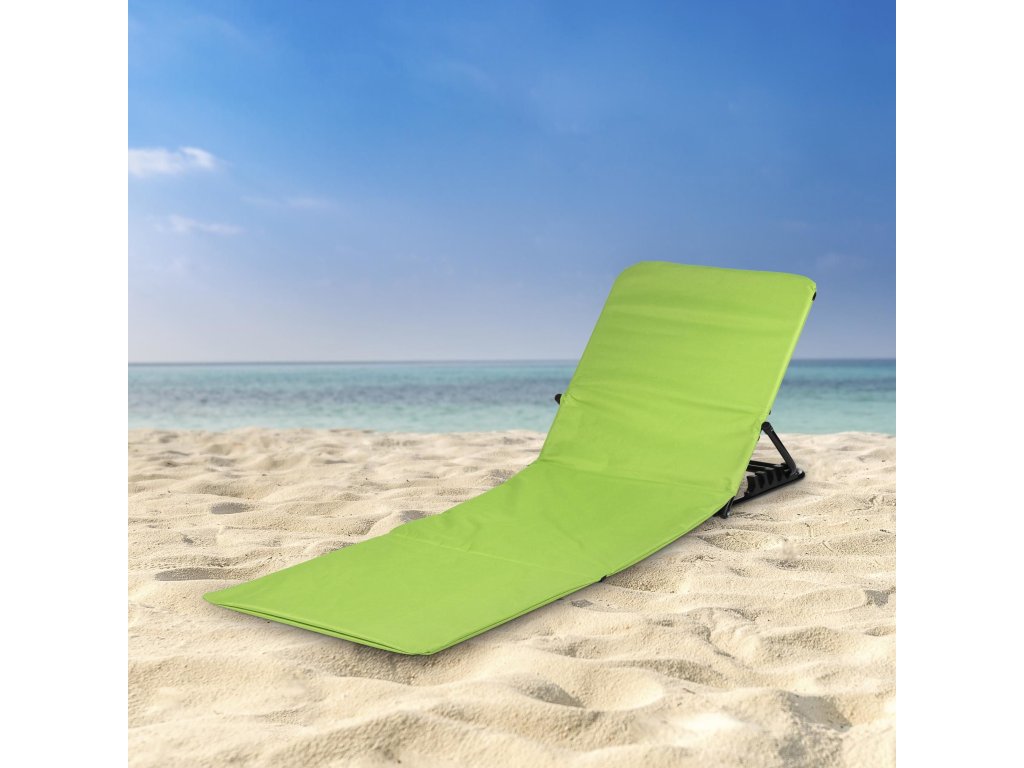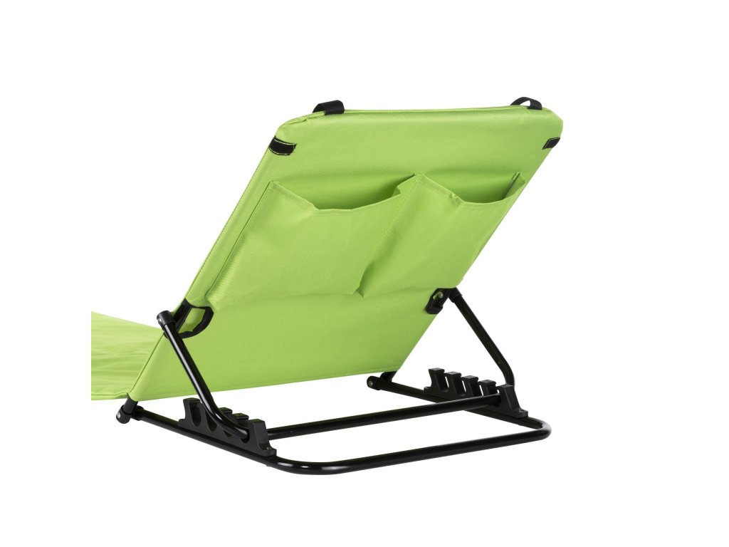Lehátko zelené, skládací je ideálním prostředkem pro pohodlné opalování a odpočinek u vody, na plážích apod.Pohodlné pěnové plážové lehátko s nastavitelnou opěrkou zad ve 4 stupních s pevným rámem. Na zadní straně má 2 úložné kapsy na časopisy nebo občerstvení.