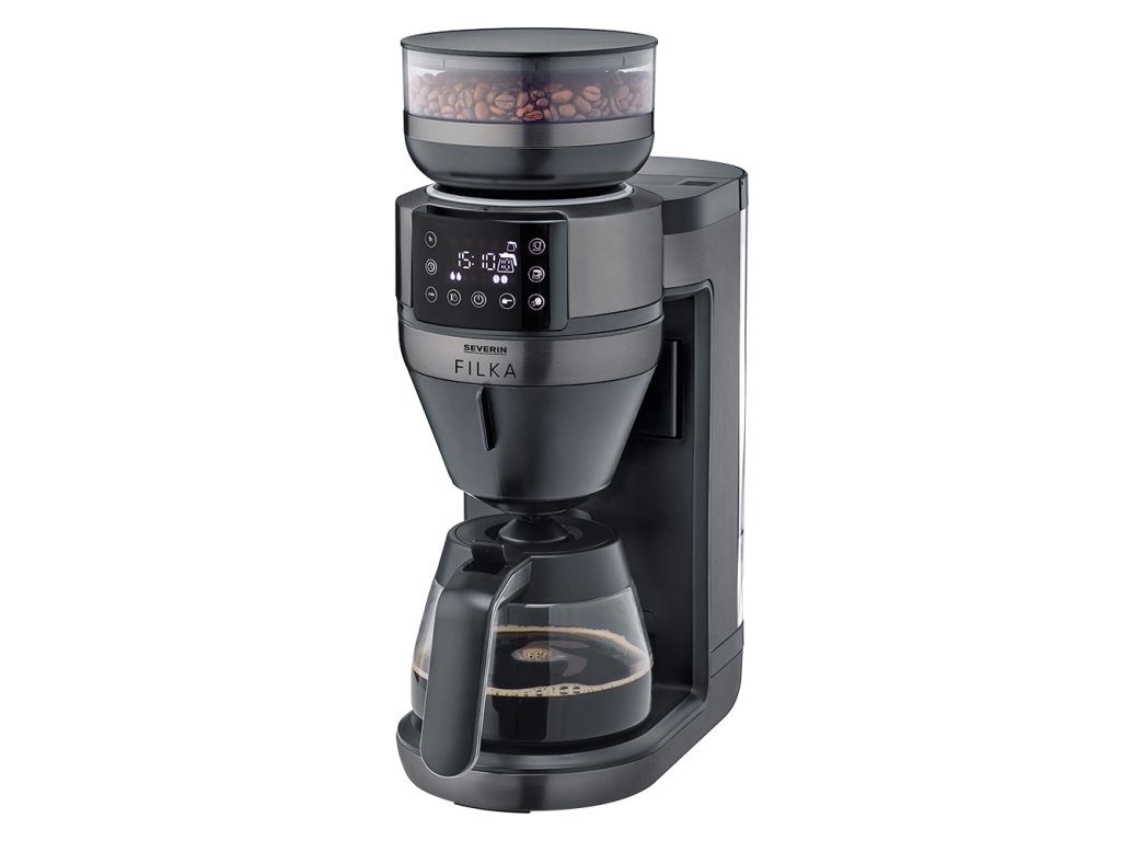 Kávovar Severin, KA 4849 FILKA INOX DARK, automatický, filtrační, skleněná konvice, mlýnek, 1520 W