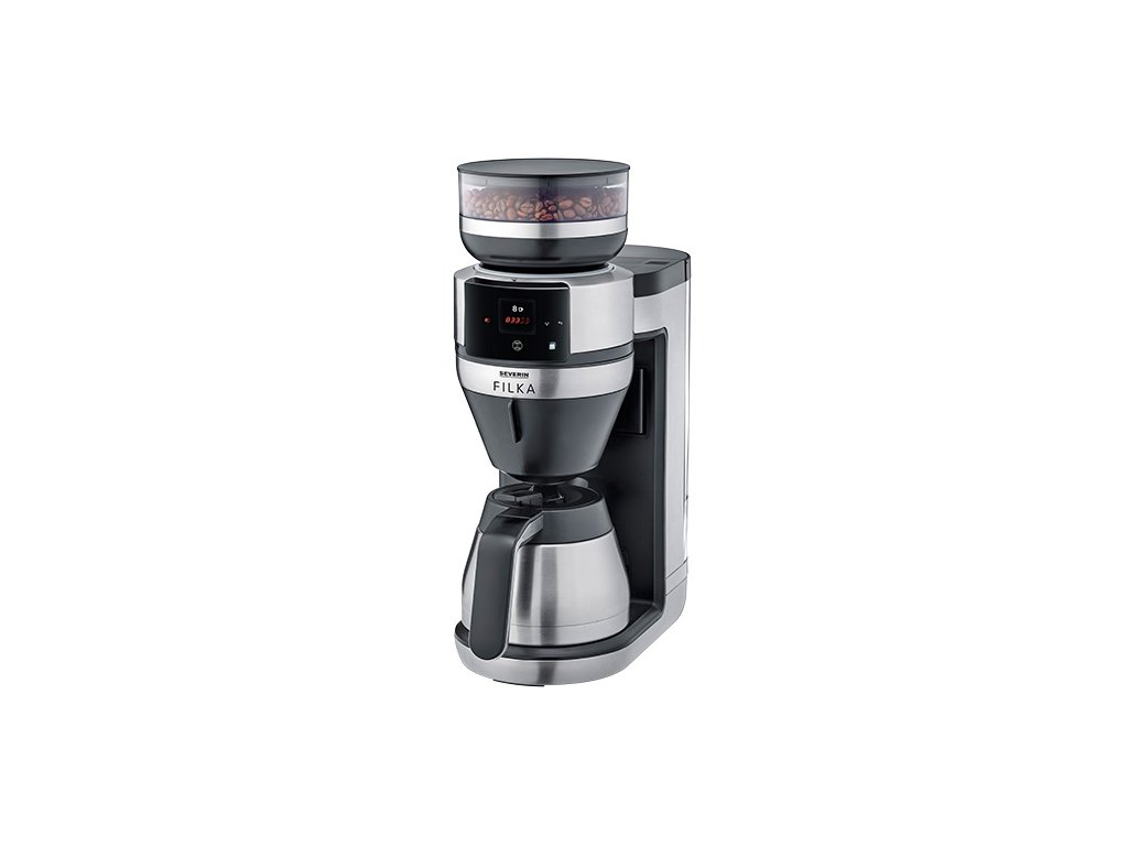 Kávovar Severin, KA 4853, FILKA, automatický, filtrační, 5v1, integrovaný kónický mlýnek, termokonvice, Led touch displej, časovač, 2 l, 10 šálků, 1520 W