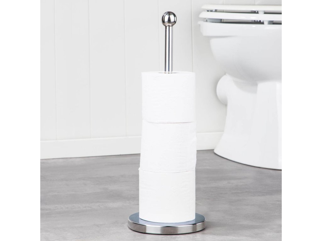 Kompaktní stojan se základní deskou - takže role papíru zůstávají hygienicky suché a čisté i po vysátí a vytření. Stabilní zásobník toaletního papíru v elegantním nadčasovém provedení pojme až 4 role.