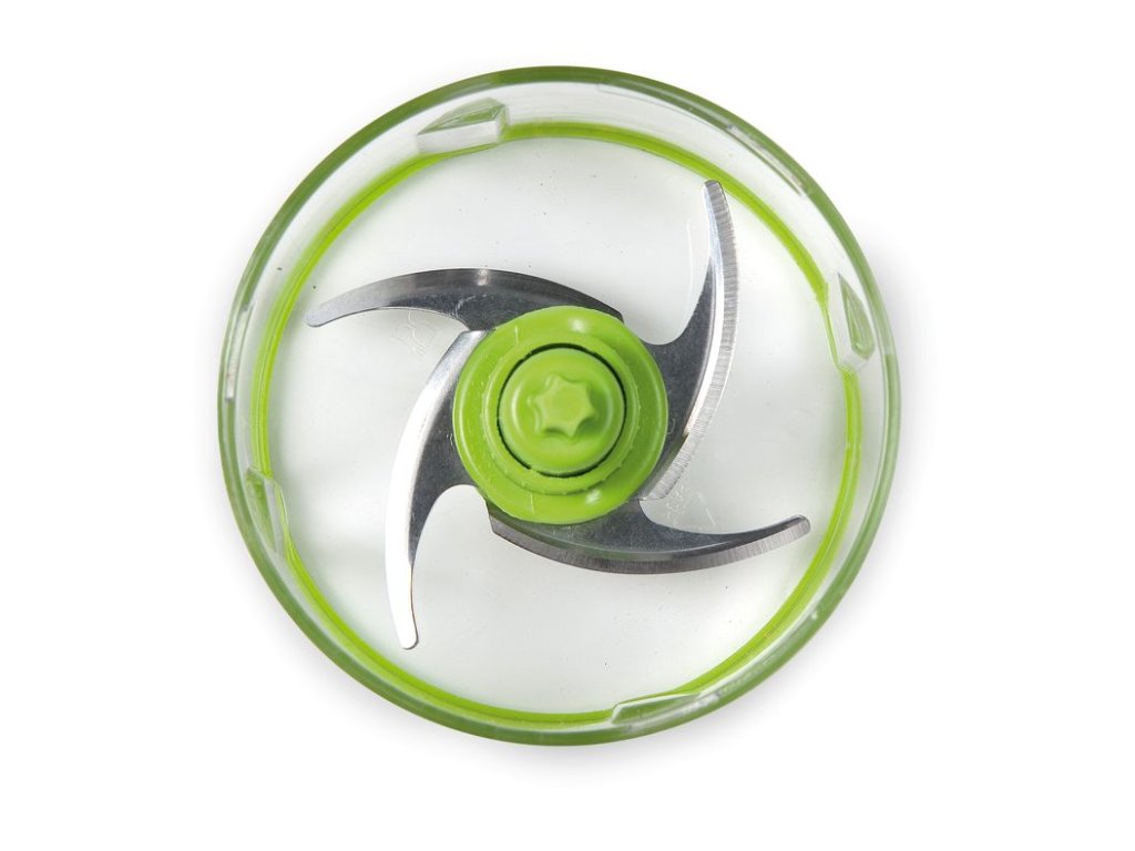 Tento mini sekáček je navíc vybaven zdvojeným nožem se čtyřmi břity "Quadblade" čímž se stává až 2x rychlejší, úspornější a účinější. Zdvojené čepele jsou nad sebou ve vertikální rovině, kvůli rovnoměrnosti rozsekání. Spodní čepele prvotně rozsekají a rozvíří suroviny, rozvířené poletující části rozsekání horní čepel a ve výsledku je vše konzistentní.