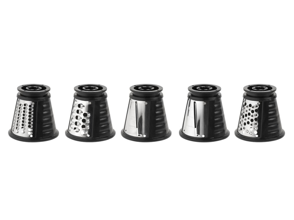 Struhadlo s 150 W motorem a pěti různými nástavci vám umožní připravit pyré nebo nakrájet zeleninu a ovoce na stejné řezy bez rizika zranění.