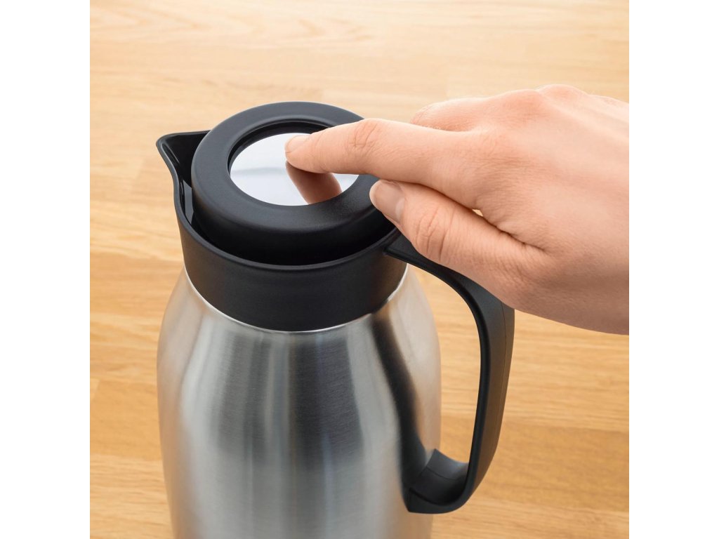 Ovládání jednou rukou s praktickým chromovaným tlačítkem na víku usnadňuje bezpečné nalévání bez kápnutí vedle.