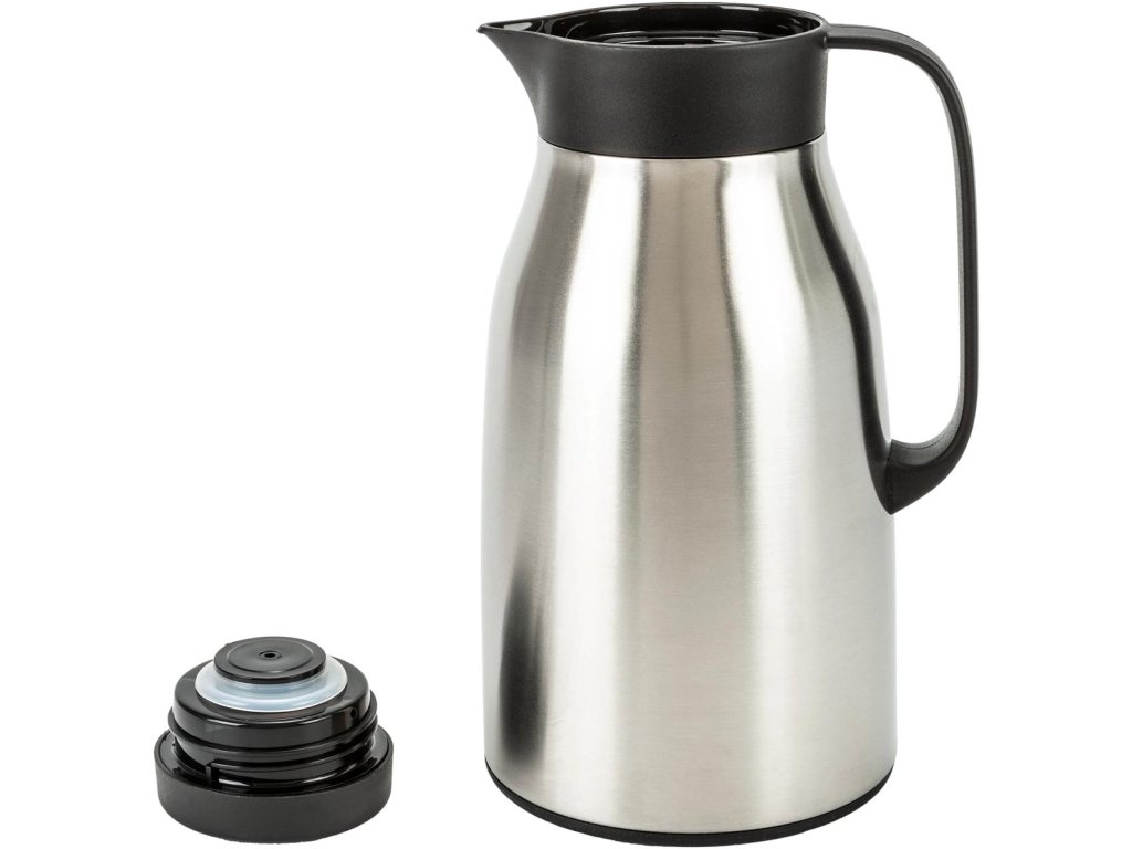 Džbán je vyroben z kvalitní nerezové oceli, vnitřní skleněná vložka zajišťuje dokonalou izolaci, a plastové a silikonové prvky dodávají na funkčnosti.