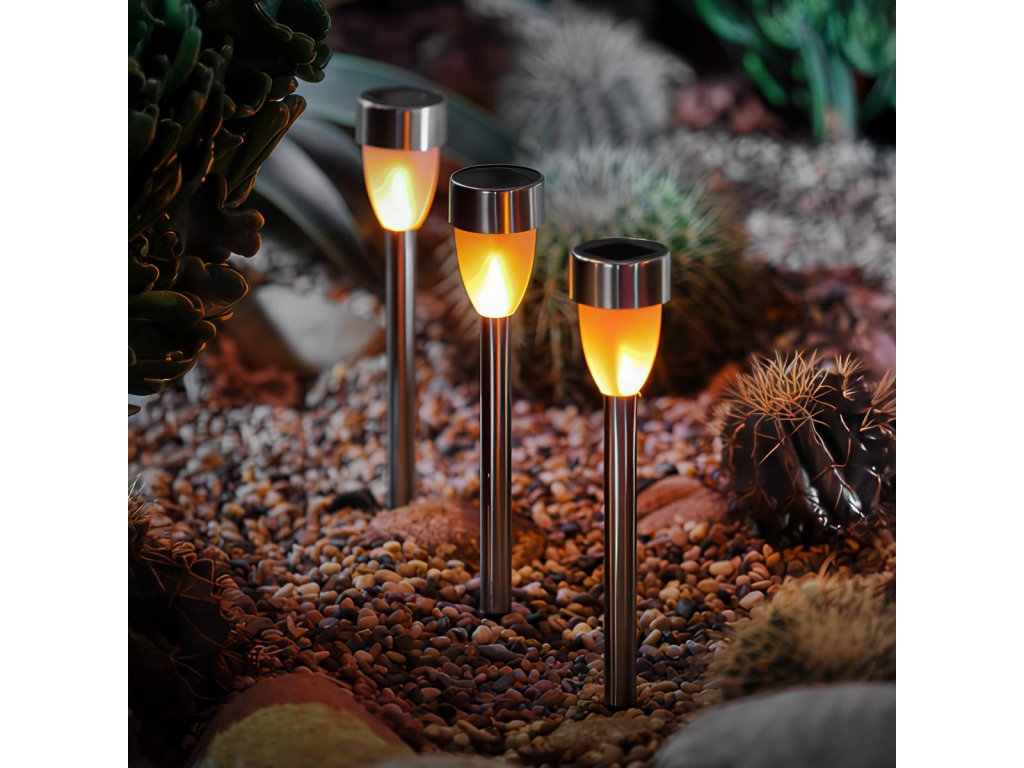 Solární lampa s efektem plamene, 4 ks