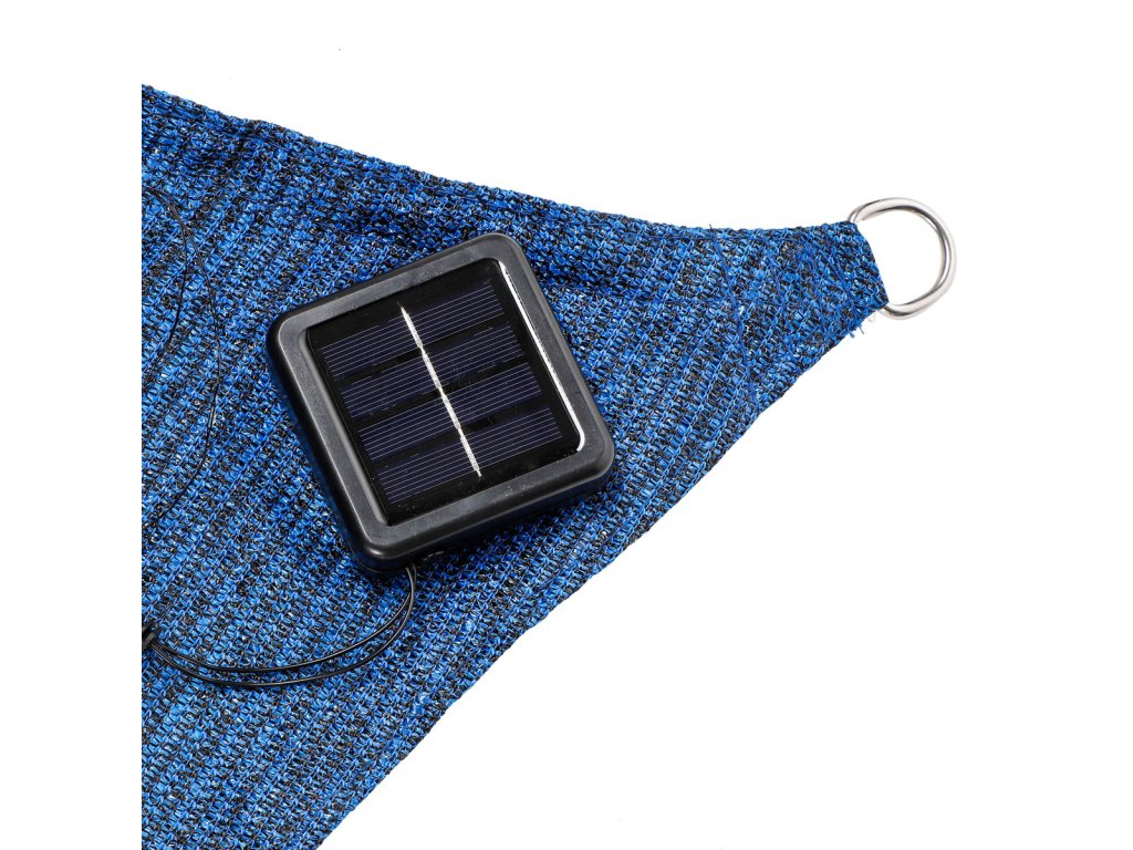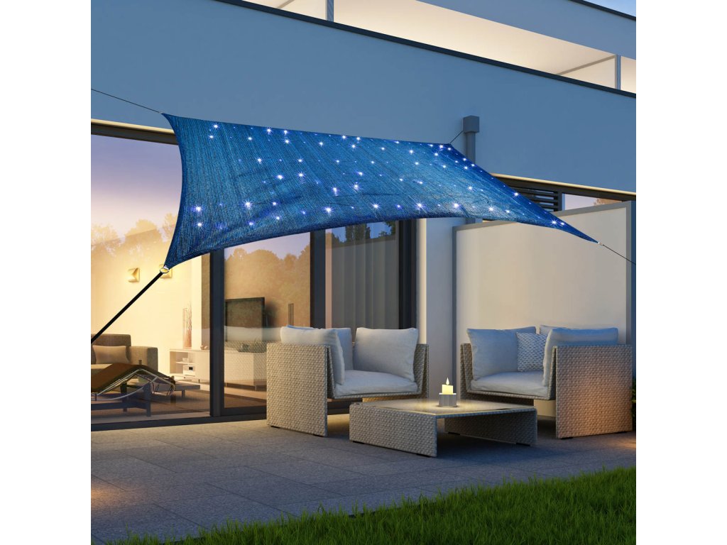 Tato sluneční plachta s LED diodami je dekorativním a praktickým doplňkem venkovního prostoru.