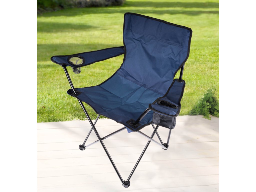 Skládací kempingová židle je ideálním společníkem pro všechny venkovní aktivity. S pohodlnými područkami, kdy jedna područka má prostor na uložení mobilu a druhá na nápoj. Zahradní židle s praktickou taškou pro jednoduché přenášení.